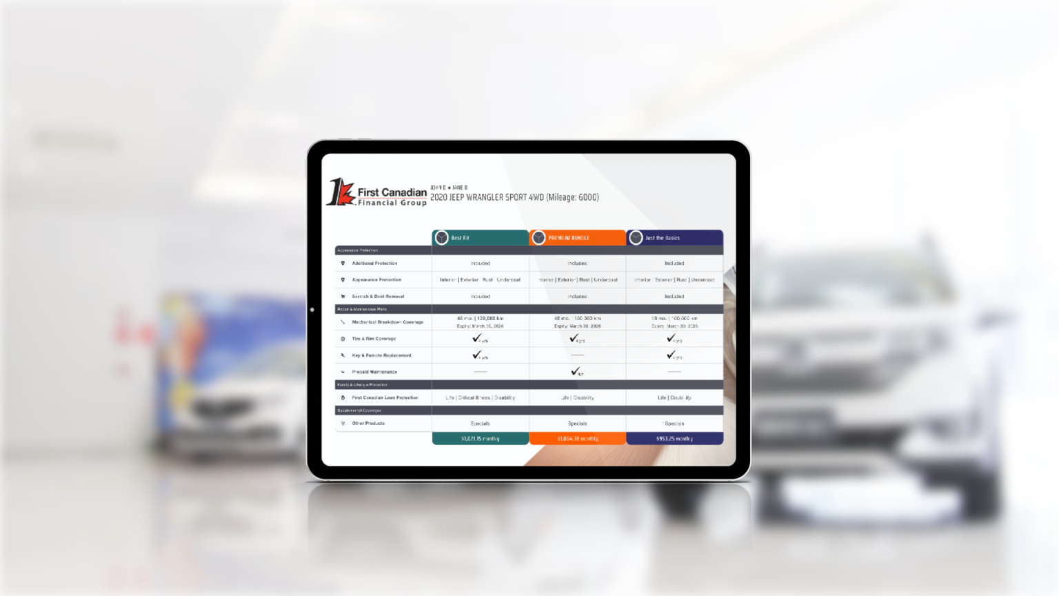 A custom presentation application built for First Canadian managers to streamline the presentation of auxiliary automotive products across Canada.